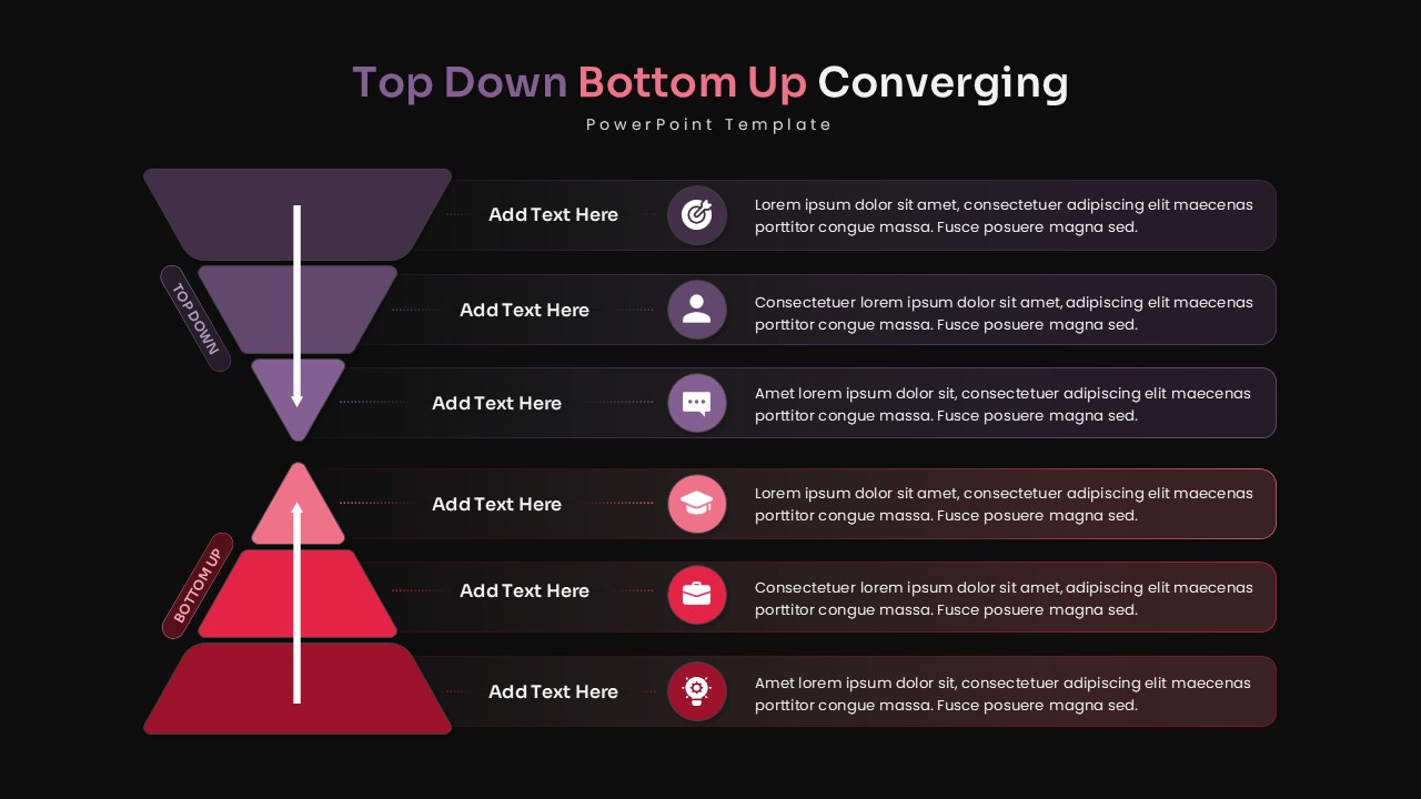 This top down bottom up converging template for PowerPoint includes: