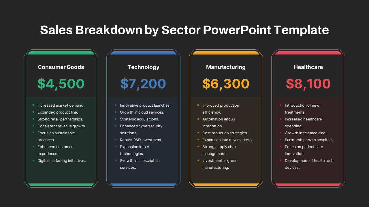 Sales Revenue Breakdown by Sectors PowerPoint Template