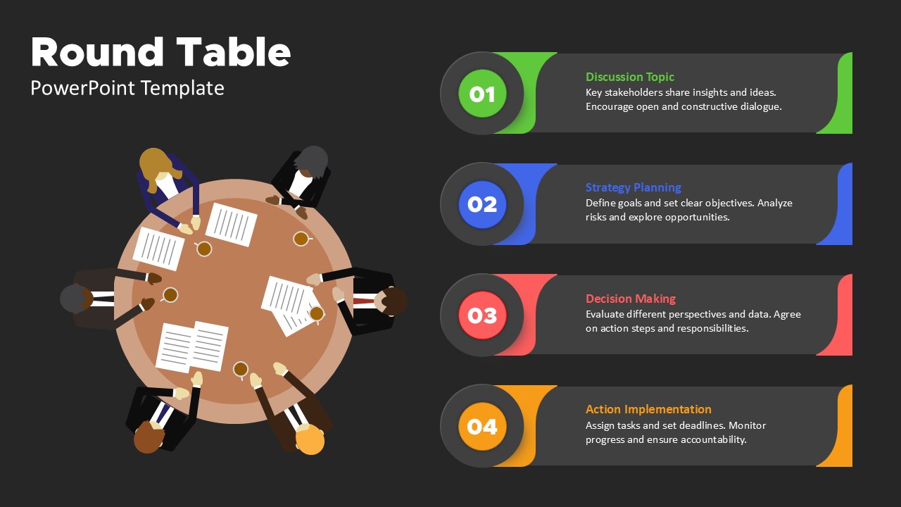 Round Table PowerPoint Template Black