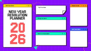 Beyond New Year resolutions, these free slides can be repurposed for personal development planning, learning roadmaps, travel wish lists, habit tracking, or workshop activities. It can also support vision boarding sessions, self-reflection exercises, and coaching presentations across various personal and professional contexts.