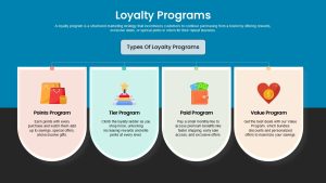 Perfect for presentations on customer loyalty, marketing strategies, and retention efforts, this slide is an essential tool for marketers, business owners, and anyone looking to communicate the value of loyalty programs effectively. It also helps brands decide which type of program fits best with their customer base and business model.