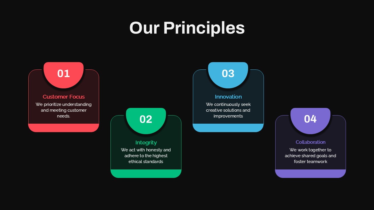 Leaders, HR professionals, trainers, and marketing teams will benefit from this slide when communicating company values, establishing team norms, or introducing guiding principles to stakeholders.