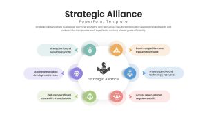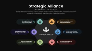 Optimized for both PowerPoint and Google Slides, this template allows easy customization to align with your specific brand needs or industry. Whether you are preparing for a business strategy presentation, a partnership proposal, or a market expansion discussion, this slide deck serves as a valuable tool to communicate the complex landscape of strategic alliances clearly and professionally.