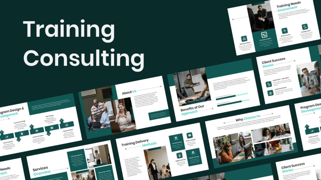 Beyond training consultancy, this deck can be repurposed for HR proposals, employee engagement strategies, leadership development initiatives, internal training program pitches, or academic workshops. It also serves as a strong communication tool for presenting performance improvement projects or blended learning strategies.